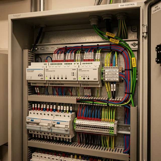 Trasladamos la robustez de la automatización industrial al hogar y edificios inteligentes. Mediante el estándar KNX, integramos todos los sistemas del edificio (iluminación, persianas, HVAC, seguridad) en una única plataforma de control intuitiva. Nuestras soluciones Smart Home no solo aumentan el confort, sino que optimizan el uso de la energía basándose en la presencia y condiciones ambientales.